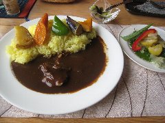 正直村 | カレー /洋食 | 北海道富良野市北の峰 | ★ (2008.8.10) | 普通 | ![]() | 富良野スキー場北の峰ゾーンのすぐ近くにあります。富良野ご当地メニューであるオムカレーが食べられるお店です。富良野オムカレーの6ヶ条とは、@お米は富良野産を使いライスに工夫する、A富良野産タマゴを使い中央に旗を立てる、B富良野産チーズ(バター)またはワインを使う、C富良野産の野菜、肉、福神漬を使う、Dふらの牛乳を付ける、E1000円以内で提供する、だそうです。特に奇をてらった感じは無くとも、素朴な感じで美味しかったです。 |