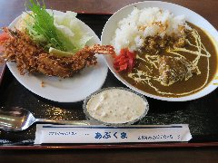 ファミリーレストラン | カレー/洋食 | 福島県伊達郡国見町大字塚野目字下三本木 | ★★ (2016.4.30) | 普通 | ![]() | 藤田駅から1kmほど、国道4号の藤田病院入口交差点にあります。レトロなドライブインといった外観です。店内は、テーブルが7つ、かなりゆったりとした配置です。店内はかなりレトロな雰囲気です。あぶくまカレー(1100円、ランチライム)を注文しました。カレーと(何故か)エビフライのセットです。洋風なカレーには大きい牛肉が入っていました。エビフライは衣にアーモンドスライスを混ぜていてカラっと揚がっています。結構大きいです。別皿でたっぷりのタルタルソースが付きます。両方とも美味しかったです。ランチ以外では1250円なのでお得感があります。他には、オムレツカレー、ハンバーグ、オムライス、焼肉味噌だれ定食、蕎麦などがありました。 |