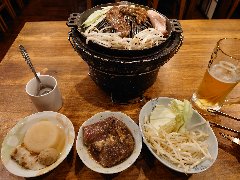 ![]() | 戸倉駅から2.2kmほど、上山田温泉街の新世界通りにあります。3階建てのお茶屋の建物の1階です。店内は、テーブルが4つありました。ご主人は日本茶インストラクターの資格をもつそうです。ジンギスカン(1500円)とラムチョップNZ(600円)などを注文しました。お通しはおでんでした。ジンギスカンは初回のみ野菜付き、自家製タレに付け込んだラムは柔らかく適度に脂が乗っていました。特製ダレを付けて頂きます。ラムチョップは肉厚でじっくり焼きます。旨味があって柔らかかったです。美味しかったです。他には、ラムタン、ラムショルダー、ラムせせりなどがありました。 |