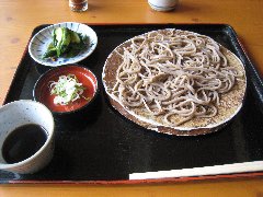 | あらきそば | そば | 山形県村山市大久保甲 | ★ (2004.8.7) | 普通 | ![]() | 最上川三難所そば街道にあります。茅葺き屋根の古民家のお店です。かなり有名店のようです。うす毛利(もり)を食べました。大きな箱?板?にぶっとい蕎麦が底が見えるほど薄く盛られています(板そばと言うらしい)。まさに蕎麦そのものといった感じで美味しかったです。でも自分にはちょっと太過ぎるなあと思いました。ニシンの味噌煮も有名です。 |