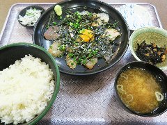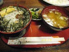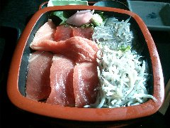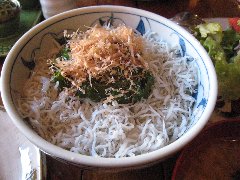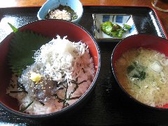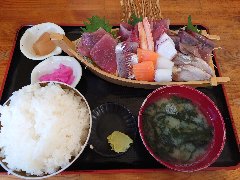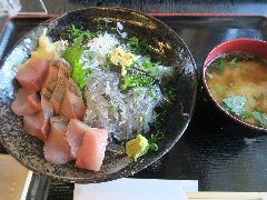 池田丸 | 和食 | 神奈川県鎌倉市腰越 | ★ (2014.5.23) | 普通 | ![]() | 江ノ電、腰越駅から2分ほど、国道134号沿いにあります。目の前は海、腰越漁港です。看板には船宿と書かれていて、釣り船をやっているようです。1階で受付をし、2階と3階で食事ができます。3階の座敷に通されました。窓からは江ノ島が見えて景色がいいです。しらす二色丼(1100円)を食べました。各丼メニューにはあかもくの小鉢と漬物、味噌汁が付きます。あかもくはメカブのような粘り気が強い海草です。二色丼は生しらしと釜揚げしらすが乗っています。美味しいですが、漁港の目の前なのだからもうちょっと盛りが豪快であってほしいですね。始めた食べてあかもくが美味しかったです。 |