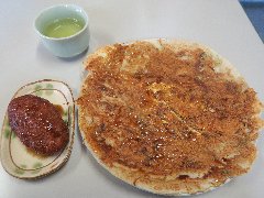 かねつき堂 | 郷土 | 埼玉県行田市本丸 | ★ (2017.1.7) | 小安 | ![]() | 行田市駅南口から12、3分、行田市郷土博物館から国道125号を渡った辺りにあります。外には鐘がない鐘楼がありました。店内は、長テーブルが1つ、小上がりの座敷にテーブルが4つありました。隣の部屋にもテーブルがありましたが使っているか分かりません。こじんまりとしてレトロでアットホームな雰囲気です。ゼリーフライ(1個)(100円)、ふらい卵入り(小)(350円)を注文しました。ゼリーフライは、おから入りコロッケのような感じでソースをくぐらせています。思ったよりしっとりしていて美味しいです。銭(型)フライがゼリーフライになったとか、強引過ぎます。ふらいは、薄いお好み焼きのような感じで値段の割りに大きいです。どちらもB級感が濃くていいですね。他には、焼きそば、ふらい焼きそば、おかみ特製いなりずし、ところてんなどがありました。 |