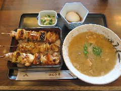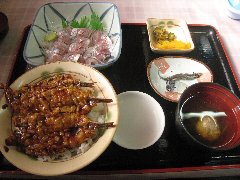 ![]() | 国府津駅から東に3、4分、国道1号沿いにあります。海のすぐ近く、お店の前から西湘バイパス越しにが見えます。3階建ての大きな建物です。創業は昭和15年という老舗です。店内は、テーブルが6つ、座敷もありました。和風の落ち着いた雰囲気です。窓からは海が見えます。のんき定食(1300円)を注文しました。焼き鳥丼、豚汁、温玉、漬物が付きます。焼き鳥丼は、ねぎまが2本と鳥皮が1本です。甘めのタレで香ばしく焼かれていました。串を取って温玉を乗せるといい感じです。豚汁は大きめの丼でたっぷり、具だくさんでした。美味しかったです。他には、うな重、ひつまぶし、刺身定食、アジフライ定食などがありました。うなぎがメインなのかもしれません。 |