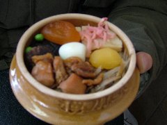 おぎのや | 和食 | 群馬県安中市松井田町横川 | ★ (2005.2.26) | 普通 | ![]() | 横川駅の前、国道18号沿いにあります。超有名な駅弁、峠の釜めしのお店です。明治18年から横川駅で駅弁を売っていたようです。釜飯は昭和33年から売っているようです。今ではいろいろな場所で買えるようです。いつ食べても美味しいですね。数種類の具と炊き込みご飯の味加減が絶妙です。別容器の漬物もいいですね。お釜は益子焼きだそうです。 |