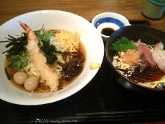 ひととき | 和食 | 神奈川県鎌倉市大船 | ★ (2015.5.26) | 普通 | ![]() | 大船駅東口から2、3分、雑居ビルの2階にあります。魚介系の居酒屋です。店内はカウンター席が6つ、テーブルが4つありました。ランチメニューから冷し海鮮麺、おまかせ海鮮丼付き(980円)を注文しました。冷し海鮮麺には、刻み海苔、生海苔、エビフライ、きゅうり、錦糸卵、キクラゲ、うずら、刻みネギが入っていました。酸っぱいスープの冷やし中華です。海鮮と言うほど海鮮が入っていない気がします。海鮮丼には、づけマグロ、マグロユッケ、甘エビ、白身の魚が乗っていました。さすがにこちらは美味しかったです。この日は、暑くて思わず冷し海鮮麺にしましたが、ランチメニューには海鮮系の丼がいろいろありました。こっちが正解かも。居酒屋メニューも良さそうです。 |