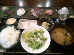 風月 | 和食 | 神奈川県川崎市幸区下平間 | ★ (2015.6.4) | 普通 | ![]() | 鹿島田駅から東側に2分、建物の3階にありますが、1階の入口は目立たないです。居酒屋さんですがランチで来店しました。店内は、こじんまりとしていてお洒落な雰囲気です。カウンター席、テーブル、座敷があります。ランチメニューから、お刺身盛り合わせ御膳(980円)を注文しました。ご飯、味噌汁、サラダ、茶碗蒸、漬物、刺身が付きます。刺身は、カツオ、タコ、ブリ、サーモン、鯛?の2切れずつの5種でした。刺身は美味しかったです。他のランチメニューには、にぎり寿司盛合わせ御膳、海鮮ちらし丼茶漬け御膳、焼魚御膳などがありました。居酒屋メニューも期待できそうです。 |