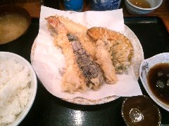 ![]() | 元住吉駅東口から1分、オズ通り商店街にあります。黄色い派手な看板が目立っています。店内は、コの字のカウンター席が17ありました。内側の厨房で天ぷらを揚げています。博多定食(980円)を注文しました。ライス、味噌汁が付きます。天つゆは色が濃くて大根おろしが入っていました。漬物3種類はセルフサービスです、天ぷらは一品ずつ揚げ立てが出されます。キス、エビ、豚肉ロース、レンコン、しめじ、イカ、カボチャでした。揚げ立てでサクサクです。特にイカが柔らかくていいです。美味しかったです。そして安いです。他には、鶏天定食、旬の野菜定食、海老三昧定食などがありました。 |