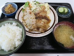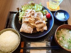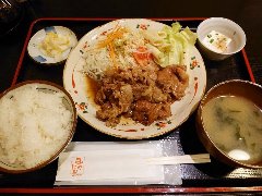 ![]() | 地下鉄の弘明寺駅から3、4分、旧鎌倉街道沿いにあります。2階建ての1階です。うぐいす色の暖簾が掛かっていました。店内は、テーブルが5つありました。スッキリした内装です。しょうが焼き(ロース160g)(1800円)を注文しました。しょうがの量と醤油の濃さを調整出来ます。ご飯、豚汁、漬物が付きます。しょうが焼きには大量のレタス、豚肉は林SPF、高知県の生姜を使っています。大きめの肉が4枚、柔らかくて旨味がたっぷり、適度な生姜の濃さでした。ご飯はやや少なめでした。美味しかったです。他には、四国香る合盛りしょうが焼き、カレー薫るしょうが焼き、旨塩ハンバーグなどがありました。 |