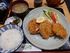 ![]() | 東神奈川駅西口から3分ほど、駅の近くの路地にあります。ビルの1、2階です。白い暖簾が架かっていました。店内は、1階と2階にカウンターが多数、テーブルが多数がありました。リニューアルしたようで明るくてきれいです。何故かラテンな民謡が流れていました。特ヒレ定食(1480円)を注文しました。ご飯、味噌汁、漬物が付きます。ヒレカツが3枚、衣はさくさく、肉はまずまずの厚さで柔らかくジューシーです。豚肉の旨味がしっかりしていました。美味しかったです。他には、特製せんのき定食、ジャンボロース定食、ミックス定食などがありました。 |