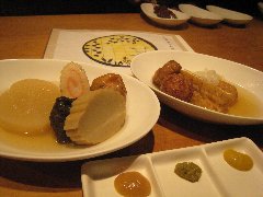小田原おでん本店 | おでん | 神奈川県小田原市浜町 | 無し (2010.4.3) | 小高 | ![]() | 小田原駅東口から15分ほど、国道1号の唐人町交差点のさらに海の方にあります。おでん屋とは思えない門構えにちょっと入るのを躊躇してしまいます。店内もおでん屋とは思えないお洒落な感じです。おでん鍋を囲んでコの字型のカウンターがあります。おでん盛り合わせおまかせ5品を2皿食べました。気を利かしていただき10品にしてくれました。美味しいですが具は小さめで高いです。また、女性の4人組みと2人組みの先客がいたのですが、我々でかい男2人をわざわざその間に座らされ肩身の狭い思いをしました。こちらから他の席でもいいですか?と尋ねたところダメでした。席も狭くお隣の女性にも気が引けました。他にも席が空いてるんだから気を利かせて欲しいもんです。そのため、2人でおでん10品を速攻で食べ入店から15分ほどで店を出ました。おでんはもっと気軽で安くて庶民的な食べ物でしょ。なんかイメージが違っていました。 |