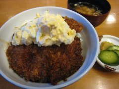板鼻館 | とんかつ | 群馬県安中市板鼻 | ★★ (2012.6.30) | 普通 | ![]() | 安中駅から1.7km、国道18号(安中バイパス)の岩井交差点から碓氷川を渡って板鼻宿の交差点の近くにあります。和風の店構えです。店内はテーブル席が4つ、小上がりのテーブルもあります。タルタルカツ丼が名物のお店です。タルタルカツ丼(ロース)(900円)を食べました。注文するとまずスライスしたゆで卵と玉ねぎが入りマヨネーズが入ったすり鉢が出されます。自分でタルタルソースを作ります。その後、かつ丼が出されます。下仁田ポークのカツは甘めのタレが浸み込んでいます。作ったタルタルソースをお好みでかつ丼に乗せて頂きます。ボリュームもあって美味しいです。タルタルソースを自分で作るというのが面白いですね。とんかつソースでも美味しいかも。因みにかつ丼(ヒレ)だと1200円です。他にはタルタルカツバーガー、エビタルカツ丼などがありました。 |