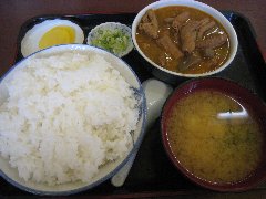 永井食堂 | 和食 | 群馬県渋川市上白井 | ★★★ (2013.9.21) | 普通 | ![]() | 渋川の市街地から国道17号を北上するとあります。駅で言うと距離的には津久田駅が近いですが、利根川の対岸なので実際は遠いです。街道沿いにあるドライブインといった感じです。開店(9:30)の少し後に行ったのですが、すでに満席で待ち客もいました。駐車場には警備員もいました。決して便利とは言えない場所、且つ席数も多いのにこの時間でこの客数は驚きです。お店は開けっ広げで、横に長いカウンターで23席あります。お目当ての、もつ煮定食(590円)を食べました。モツ煮込み、ご飯、味噌汁、薬味の刻みネギ、たくわんが付きます。具は豚モツ、コンニャクのみでシンプルです。ニンニク、唐辛子、ゴマが加わり味噌で煮込んでいます。臭みは一切無くとても美味しいです。ご飯は何も言わないと大盛りになります。普通盛りにするには半ライスを頼むようです。モツ煮でご飯が進みますが、大盛りご飯はかなり多いです。他には目玉焼き定食、納豆定食、ラーメン(320円)などがありました。 |
