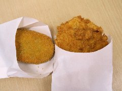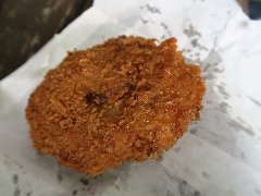 ![]() | 下仁田駅から1、2分ほど、中央通りというとても小ぢんまりした商店街にあります。昭和25年創業の精肉屋さんです。通りに面して精肉のショーケースがあり、脇の入口から中に入ると惣菜のレジがあります。そこにちょっとしたベンチがあり座って食べられます。ハムカツ(80円)とコロッケ(80円)を買いました。注文してから揚げてくれます。どちらも熱々ホクホク、おやつにちょうどいいです。美味しかったです。安いですね。他には、トンカツ、メンチカツなどがありました。長閑な雰囲気がよかったです。 |