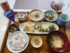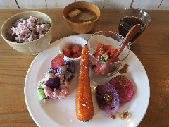 ![]() | 上尾駅西口から5kmほど、上尾道路を越えて荒川の方へ進むとあります。平屋の建物です。壁に直接書かれた店名が目立っています。この看板に吸い寄せられました^ ^。店内は、カウンター席が3つ、テーブルが8つありました。入ってすぐの部屋は雑貨などもたくさん置いてあり、隣の部屋はカフェっぽい部屋でした。女性の店員がいっぱいいました。料理についてはみんなで説明してくれます。薬膳御膳(1560円)を注文しました。水出しハーブティ、シーフードの豆乳仕立て、新ジャガと豚肉のテリーヌ、タケノコ、空豆、山菜の天ぷら、浅漬けなどのおかずでした。素材を生かした優しい味でとてもヘルシーでした。ドクダミ茶も付きます。美味しかったです。他には、魔女のカフェ薬膳カレー、特製唐揚げタルタル、特製だしうどんなどがありました。バイク乗りのお店の方とのお話が楽しかったです。 |