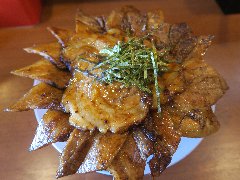 豚丼専門店 木ノ下 | 和食 | 埼玉県狭山市新狭山 | ★★ (2017.5.5) | 普通 | ![]() | 新狭山駅北口から2分、駅と国道16号の中間辺りにあります。赤い看板が目立っています。店内は、カウンター席が8つありました。テーブルには高菜が置いてありました。豚丼(松、御飯少なめ)(1000円)+肉増し(300円)を注文しました。ご好意で肉増し分をチャーシューにして頂きました。花びらのようにきれいに盛り付けられた豚バラ肉とチャーシュー、刻み海苔が乗っていました。しっかり味がつけられた豚バラ肉は、香ばしく焼かれボリューム満点です。肉増しの柔らかいチャーシューがアクセントになって美味しかったです。松の御飯少なめでも満腹でした。他には、特製ねぎ豚丼、G丼、チャ〜丼がありました。それぞれ大きさは、梅(御飯200g、肉100g)、竹(御飯350g、肉200g)、松(御飯500g、肉250g)、男盛り(御飯1kg、肉450g)となっています。因みにめし増し無料です。ご主人と女性の店員さんはとても気さくでした。 |