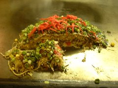 久ちゃん | お好み焼 | 広島県広島市中区新天地 | ★ (1999.8.2) | 普通 | ![]() | 広島の観光名所?であるお好み焼きの殿堂、お好み村の4階にあります。広島のお好み焼きには焼きそばが入っていることで有名ですが、その歴史は古く戦後間もなくから屋台などで売られていたようです。お好み村は4階建てで各階に屋台風のお店がたくさん入っています。その中から何故この店を選んだかといえば、たまたまです。全部入りのスーパーデラックスを食べました。美味しいですがかなりのボリュームで全部は食べられませんでした。 |