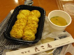 たこ庵 | 和食 | 兵庫県神戸市中央区旭通 | ★ (2007.4.28) | 普通 | ![]() | 三宮駅の東側、駅のすぐ近くにあります。ビルの2階にある明石焼きのお店です。というより居酒屋です。とても混んでいたので持ち帰りにしました。明石焼き(550円)を買いました。明石焼きは10個入っていました。もちろんスープもついています。美味しかったです。 |