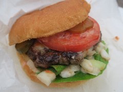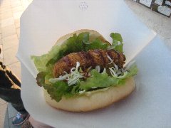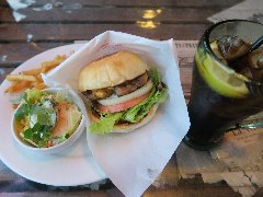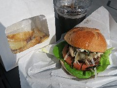 COLOCOLO | ハンバーガー | 神奈川県鎌倉市由比ガ浜 | ★ (2010.12.4) | 普通 | ![]() | 鎌倉の若宮大路、由比ヶ浜の近くにあります。テイクアウト専門のハンバーガー屋です。お店の前に一応ベンチはあります。木で作られたお店はなんとなく南国チックです。店名のコロコロバーガー(230円)を買って由比ヶ浜の浜辺で食べました。注文が入ってから揚げたサクサクのコロッケ、レタス、キャベツをバンズで挟んであります。美味しいです。コロッケにはひじきも入っています。他にもいろいろなハンバーガーがありました。 |