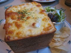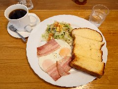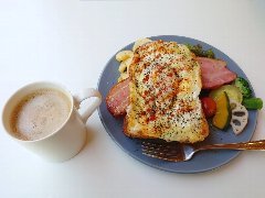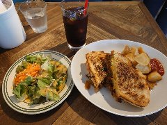 ![]() | 中央道の諏訪南ICから8kmほど、八ヶ岳自然文化園の近くにあります。林に囲まれた別荘地です。2階建ての建物、真っ赤な壁に絵が描かれたド派手な外観です。店内は、テーブルが7つありました。外にもテーブルがありました。ロフトのような2階のあるようです。明るいきれい、窓が大きくて外の緑がよく見えます。犬が3匹いました。モーニングメニューよりクロックマダムセット(1182円)を注文しました。ドリンク付きです。生野菜、温野菜、フライドポテトが添えられます。クロックマダムは大きめの食パンに玉子、チーズ、ホワイトソースが乗り、大きなベーコンがサンドされていました。結構なボリュームです。とても美味しかったです。ちょっと食べにくいです。他には、ふわふわフレンチトースト、シーフードココナッツカレー、焼き鮭の定食、ハニートーストなどがありました。 |
