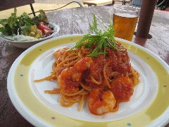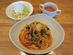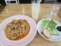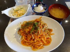 農家レストラン | イタリアン | 山形県西置賜郡飯豊町萩生 | ★ (2014.4.27) | 普通 | ![]() | 米坂線、萩生(はぎゅう)駅の西に1kmほどのところ、県道10号沿いにあります。周りは畑が広がり遠くの山並みが見えます。長閑なところです。店の前には大きな花壇のようなものがあります。これはハーブ園だそうで、エルベとはハーブという意味だそうです。店内にはテーブル多数、テラスにもテーブルが3つありました。割と大きな店です。食材は地元産、ピザは石窯で焼くそうです。海老のスパゲティソースアラビアータ(930円)、ドリンクとサラダバー(550円)を食べました。大きな海老、トマトソースがたっぷり入っています。サラダバーの種類は少なかったです。テラス席はとても気持ち良かったです。人気あるようで混んでました。 |