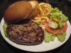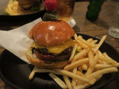 | ムースヒルズバーガー | 洋食 | 山梨県南都留郡富士河口湖町勝山 | ★ (2017.11.10) | 普通 | ![]() | 河口湖駅から西に4.4kmほど、国道139号沿いにあります。ムースとは北アメリカのヘラジカの事だそうです。ロッジのような洋風な建物です。国道沿いですが林に囲まれて静かな雰囲気です。店内は、テーブルが多数ありました。割りと広いです。暖炉があり煙突が高い天井を突き抜けていました。BGMには80年代のロックが掛かっていました。チーズバーガー(1130円)とコカコーラ(300)を注文しました。チーズ、パティ、オニオン、トマト、レタスが入っていました。バンズは天然酵母のパン、パティは粗引きオージービーフ100%です。美味しいです。フレンチフライが付きます。他には、各種ハンバーガー、ホットドッグ、サンドウィッチ、ステーキ、シェイクなどがありました。 |