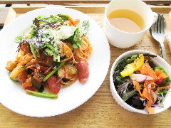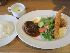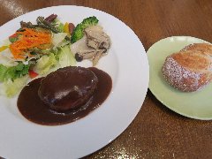 木林森カフェ | 洋食・カフェ | 山形県西置賜郡白鷹町大字荒砥乙 | ★★ (2016.5.1) | 普通 | ![]() | 荒砥駅から14、5分ほど、国道348号沿いにあります。木林森はきりんもりと読むそうです。B&Bという宿泊施設が併設されたきれいな建物です。店内は、テーブルが6つ、ソファが1つありました。アンティークや昭和な家具が置かれ、クラッシック曲が流れていました。落ち着いて雰囲気です。木林森カフェランチ(972円)を注文しました。ハンバーグとサラダ、パン、デザート、ドリンクが付きます。ハンバーグのデミソースが美味しかったです。サラダはたっりぷです。自家製のパンはおかわり自由です。デザートは、バニラアイス、ドリンクは選べます。この値段でこの内容は安いです。他には、生パスタランチ、各種ドリンク、各種デザートなどがありました。実は、バイクで走行中に豪雨に遭い、ずぶ濡れ状態で入店したのですが、快く迎えてくれてタオルまで貸して頂きました。有難うございました。 |