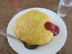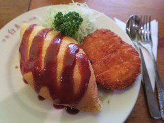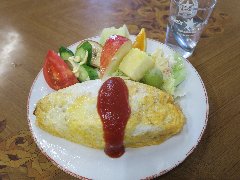 レストラン白鳥 | 洋食 | 神奈川県横浜市港北区日吉 | ★ (2015.10.17) | 普通 | ![]() | 日吉駅から1分、すぐ近くにあります。創業は昭和32年の老舗です。店内は、カウンター席が3つ、テーブルが4つありました。窓は大きいのですがブラインドが降りていてちょっと薄暗いです。何となくレトロな雰囲気です。オムライス、チキンカツ付き(800円)を注文しました。オムライスの葉たっぷりとケチャップが掛かっていました。卵はちょっと甘いです。中身はチキンライスで具は挽き肉のみです。懐かしい感じのオムライスです。チキンカツは柔らかいです。付け合せは千切りキャベツです。他には、ジャンボオムライス、オムハヤ、オムカレー、などがありました。 |