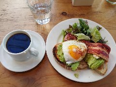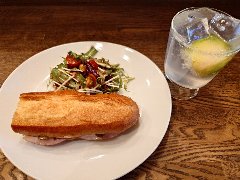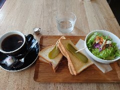 ![]() | 三島駅南口から3分ほど、芝町通り沿い、三島駅東の交差点の近くにあります。2階建ての建物の1階です。白壁ろガラス張りの外観、古い建物を改装した感じです。店内は、テーブルが5つありました。落ち着いた雰囲気でお洒落感があります。女性店主のワンオペのようでした。モーニングメニューのバジルハンバーグサンドset(800円)を注文しました。サラダとドリンクが付きます。コーヒーは直前にドリップします。フレッシュな酸味がありました。サンドは鶏肉と豚肉のハンバーグと刻み玉ねぎにバジルソースです。あっさりした味付けでした。美味しかったです。他のモーニングは、スコーン、トーストなどがありました。のんびり出来ました。朝9時からの営業。 |