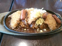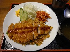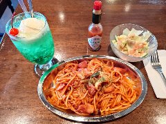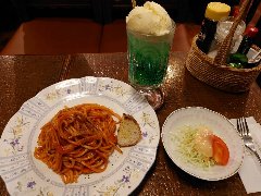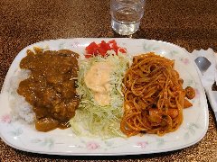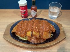 ![]() | 釧路駅から1kmほど、駅からまっすぐ南下し釧路川の手前の繁華街にあります。4階建てのビルの2階です。緑色の看板が目印です。1階の入口にはメニューサンプルがずらっと並んでいました。店内は、カウンター席が3つ、テーブルが多数ありました。明るくてファミレス感があります。人気があり混んでいました。スパカツ(1250円)を注文しました。熱々の鉄板で出されます。パスタの上に薄めのトンカツが乗りその上からたっぷりのミートソースが掛かっていました。ミートソースは挽肉と玉ねぎが入ったデミソースです。パスタはでやや焼けて香ばしいです。ボリュームもあります。昭和35年に考案されたらいいです。もはや釧路名物です。美味しかったです。他には、ステーキカレー、ポークスペシャルライス、ビーフシチュー、海の幸バター焼きなどがありました。 |