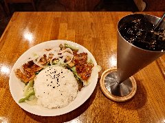 ![]() | 福島駅エスパス口から3、4分、駅前通り沿いにあります。ビルの2階です。木の扉の外観です。店内は、カウンター席、テーブルが多数ありました。結構広いです。やや薄暗いですが照明がたくさんありウッディで雰囲気がいいです。若い男の店員さんが多かったです。ふくしまブルブルとアイスコーヒー(セットで1430円)を注文しました。ふくしまブルブルは豚バラライスです。ソテーした豚バラに玉ねぎとレタス、胡椒とレモンが利いていました。かつて福島にあったレストランブルドックの名物メニューを復刻させたものだそうです。コーヒーはコクがありました。美味しかったです。他には、各種ドリンク、ドリア、パングラタン、グルメのプリンなどがありました。店長さん?は気さくな方でした。 |