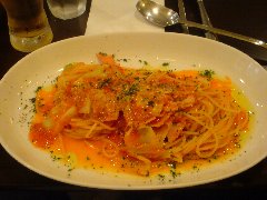 コーディアル | イタリアン | 秋田県秋田市大町 | ★ (2007.8.11) | 普通 | ![]() | 秋田の赤レンガ郷土館の近くにあります。居酒屋の一人席がどこも一杯で流れ着いたダイニングバー。小さな店でカウンターとテーブルが2、3個です。冷たいスパゲティとスペアリブを食べました。スパゲティのソースはアサリの出汁とトマトを混ぜたものでした。スペアリブはパイナップルと煮てました。どちらも美味しかったです。 |