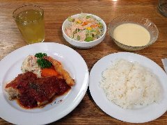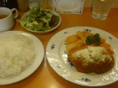 文化食堂 | 洋食 | 新潟県新発田市中田町 | ★★★ (2010.9.16) | 小安 | ![]() | 新発田駅の北側、国道7号沿いにあります。洋食屋です。店内はかなり広くテーブルとカウンターがあります。メニューにはハンバーグ、ステーキ、スパゲッティ、カレー、シチューなどいろいろあります。セットメニューから、おまかせセット(1050円)を食べました。チーズハンバーグ、スープ、ドリンクバー、デザートが付いていました。ハンバーグはかなり大きくて柔らかいくて美味しかったです。値段は安くかなりコストパフォーマンスがいいと思います。空いていてよかったです。 |