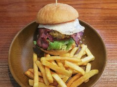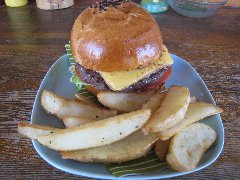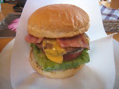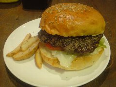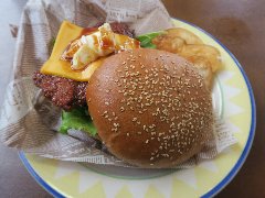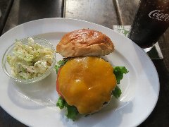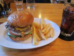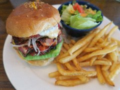 ヒーローズ | ハンバーガー | 福島県耶麻郡猪苗代町字上村前 | ★ (2015.5.2) | 普通 | ![]() | 猪苗代駅から2.6kmほど、県道7号沿いにあります。お店の後ろには磐梯山がそびえ、前は開けていて広大な畑の向こうには猪苗代湖が見えます。青の三角屋根、玄関の上には、ハーレーのようなロゴマークが付いていて、BIKECUSTOM-HIROと書かれています、アメリカンバイクのショップも併設しているようです。店内は、テーブルが多数、外向きのカウンターからは景色がいいです。ハーレーも置かれています。外のオープンデッキにもテーブルが置かれています。チーズバーガー(680円)+エッグ(108円)、ドリンクセット(302円)を注文しました。レタス、トマト、玉ねぎ、目玉焼き、パティがサンドされていました。パティは粗引きです。手作りのバンズはかなり大きめです。他には、USバーガー、メガヒーローバーガー、桜肉(馬肉)のパティを8枚重ねた八重のさくらバーガーなどがありました。 |