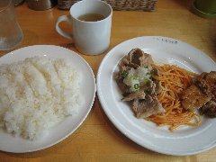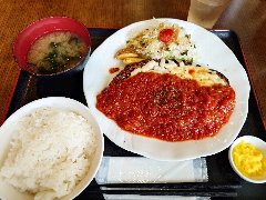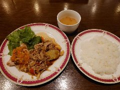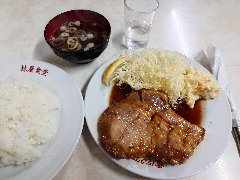 ![]() | 渋川駅から1km弱、県道25号から路地に少し入ったところにあります。2階建ての建物です。レトロな外観、出前のバイクが置いてありました。店内は、カウンター席が3つ、テーブルが6つりました。昔ながらの雰囲気があります。ポークソテー(700円)とライス(200円)を注文しました。スープが付きます。ポークソテーにはポテサラとキャベツが付きます。豚肉はスプーンで切れるくらい柔らかかったです。濃いめの甘辛ソース、レモンを絞るとさっぱりします。けっこうボリュームありました。美味しかったです。他には、ラーメン、カツ丼、カツカレー、肉野菜イタメなどがありました。 |
