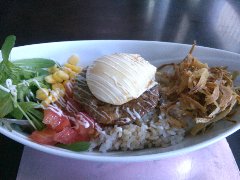 ジンジャーズビーチ | ハワイ・イタリアン | 神奈川県横浜市神奈川区金港町 | ★ (2014.12.15) | 普通 | ![]() | 横浜駅のきた東口から3分ほど、コンカード横浜という複合ビルの1階にあります。店内は、テーブル席が多数、カウンター席もあります。椅子はゆったり大きめです。リゾートの雰囲気でかなりお洒落です。壁は白、木の床、サーフボードが飾ってあったりしますが、少しシンプルで無機質な感じもします。窓際の席は一段高くなっています。お客はほとんど女性でした。ランチメニューから特製ロコモコ(1000円)を注文しました。サラダとドリンクも付きます。サラダのドレッシングが美味しかったです。ロコモコは、ベビーリーフ、フライトオニオン、トマト、ハンバーグ、ポーチドエッグ、とうもろこしが乗っていました。量は軽めです。セットのコーヒーはたっぷりめのカップで出されます。座る時に店員さんが椅子を引いてくれたり丁寧な対応です。 |