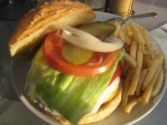ハニービー | ハンバーガー | 神奈川県横須賀市本町 | ★ (2010.7.2) | 普通 | ![]() | 米軍横須賀基地入口のすぐ近くにあります。B級グルメの横須賀ネイビーバーガーの元祖のお店です。店内は映画に出てくるようなオールドアメリカンな感じで、70〜80年代の洋楽が流れています。高めカウンターは外人仕様でしょうか。意外にも店員さんは4人全員女性でした。ヨコスカ・ネイビー・バーガー1/2lb(227g)(950円)を食べました。レタス、トマト、玉ねぎ、そして大きなハンバーグが入っていました。自分でケチャップとマスタードをつけます。厚いので手で潰して食べます。美味しくてボリュームがあります。雰囲気がいいですね。 |