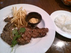 ロズレ | 洋食 | 神奈川県横浜市西区みなとみらい | ★ (2015.2.5) | 普通 | ![]() | みなとみらい駅から2分、クイーンズスクエア内のアット!2ndの2階にあります。お店の外には(屋内ですが)テラス席があります。店内はテーブルが多数あります。イタリアンのお店のようですが、(数量限定)厳選ステーキランチ(1200円)を注文しました。内容は、厳選ミニッツステーキ、パンorライス、コーヒーです。ミニッツステーキとは言え、十分なボリュームで柔らかく美味しかったです。クレソンとフライドポテト、マスタードソースが付いていました。通常のランチメニューは、パスタ、魚、肉の3種類(どれも1200円)がありました。 |