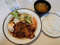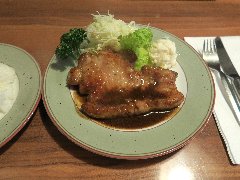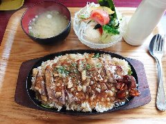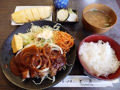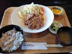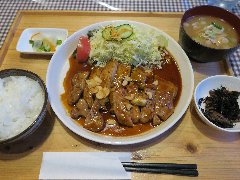 ハッピー食堂 | 洋食 | 長野県茅野市ちの | ★★ (2018.4.29) | 普通 | ![]() | 茅野駅西口から北西方向に1.7kmほど、アクアランド前の交差点の近くにあります。白壁の木造の建物です。店内は、テーブルが多数、けっこう広いです。木の床、白い壁で明るいです。信州トンテキ定食(1382円)を注文しました。ご飯は信州産、豚汁、ひじき、漬物が付きます。トンテキの特製ダレには信州味噌とリンゴを使っているそうです。ボリュームもあって美味しいです。ガーリックスライスも乗ってソースが美味しいです。豚汁は具だくさん、ご飯のおかわりも出来ます。他には、信州山賊焼き、大盛ローストビーフ丼、オムハヤシなどがありました。店員さんは丁寧でした。家族連れが多かったです。 |