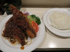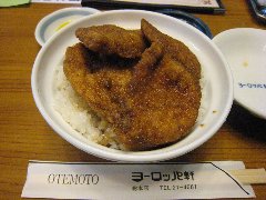 ヨーロッパ軒(総本店) | 洋食 | 福井県福井市順化 | ★★ (2009.5.4) | 普通 | ![]() | 路面電車の市役所前駅の近く、片町通りにあります。福井のB級グルメ、ソースかつ丼が食べられる洋食屋さんです。お店の歴史は古く大正時代からあるようです。かつ丼(850円)を食べました。薄く切った豚肉をカラッと揚げて甘辛いソースをつけてご飯の上に3枚乗っています。美味しいです。ほかにメニューも美味しそうでした。結構有名みたいで混んでいました。支店がいっぱいあるようです。 |