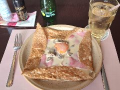 ![]() | 東北中央道の山形上山ICから11km強、県道14号沿い、蔵王温泉にあります。蔵王中央ロープウェイの乗り場のすぐ近く、ZAOセンタープラザという大きな建物の1階にあります。店内はテーブルが多数、座敷もありました。とても広いです。そばの実バーガー(660円)とそば粉ガレット(750円)とコーラを注文しました。ハンバーガーはテリヤキソース、パテに蕎麦の実が入っているそうですが蕎麦感はなかったです。ガレットは、玉子、玉ねぎ、マッシュルーム、ベーコン、チーズなどが入っていました。どちらも美味しかったです。割りと安いと思います。他には、板そば、キーマカレー、手作りソーセージ盛合わせなどがありました。 |