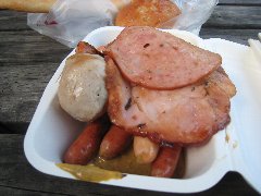 | 古志路 (こしじ) | 洋食 | 山梨県南都留郡山中湖村平野 | ★★ (2010.4.10) | 普通 | ![]() | 山中湖の東部、国道413号から少し路地に入った別荘地にあります。燻製工房倶楽部と書かれたソーセージなどのテイクアウトのための薄ピンク色の建物と、ウッディな茶色のレストランの建物から成っています。気持ち良さそうなテラス席もあります。ソーセージの盛り合わせ(1100円)、ビーフシチュー(1360円)とパン(250円)、ソーセージとキャベツの煮込み(950円)を食べました。ソーセージはプリっとした感じではなくてしっとりした感じでした。ビーフシチューは肉が大きく濃厚で美味しかったです。ビールを飲みたくなりますね。 |