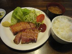 キッチン | 洋食 | 神奈川県川崎市高津区坂戸 | ★ (2015.7.8) | 普通 | ![]() | 高津駅から7、8分、府中街道を渡って南の方へ行くとあります。レンガ壁のマンションの1階にあります。店内は、カウンター席が9つ、テーブルが1つありました。ランチタイム限定の、リブロインロースステーキ(1480円)を注文しました。サラダ、味噌汁、ライスが付きます。ステーキは柔らかくて適度に脂が乗って美味しかったです。その他は、ハンバーグ、ポークステーキ、ロコモコ丼、オムライスなどがありました。店員さんは丁寧です。店内がけっこう煙たかったです。 |
