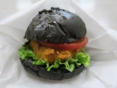 島の湯食堂 | ハンバーガー | 石川県七尾市能登島佐波町 | ★★ (2015.10.9) | 普通 | ![]() | 能登島にあるひょっこり温泉の中にある食堂です。店内は広くてテーブルが多数あります。まさに温泉施設によくあるスタイルの食堂です。食券を買います。能登島バーガー(黒)(500円)を注文しました。黒いバンズはイカスミです。トマト、レタス、アオリイカのクリームコロッケをサンドしています。揚げたてコロッケはサクッと中は熱々です。全て地元の食材で、ホワイトソースも能登ミルクを使用しているそうです。美味しいです。能登島バーガーシール付きです。他には、能登島バーガー(白)は能登島の三元豚の豚カツ、能登島バーガー(ふぐ)は能登ふぐのフライをサンドしているそうです。さらに、各種釜めし、能登牛カレー、そば、うどん、ラーメンなどいろいろありました。 |