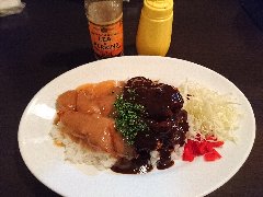 ![]() | 長岡駅西口から北に5分ほど、繁華街からはちょっと離れた路地にあります。マンションの1階です。夜は大きな縦型の看板が煌々と光っています。店内は、カウンター席が10、テーブルが3つ、奥にも部屋があるようでした。いかにも洋食屋の雰囲気です。洋風カツ丼ハーフ&ハーフ(850円)を注文しました。洋風カツ丼は、丼ではなく皿にご飯、トンカツと千切りキャベツが乗り洋風のソースが掛かっています。ソースはファミリーソースとデミグラスソースです。ファミリーソースは、ケチャップベースだそうでトロっとして甘く、みたらしの餡にもちょっと似ていました。味も色も独特です。デミグラスもトロっとしていてコクがありました。2種類のソースが味わえるのは嬉しいです。トンカツは薄めでサクサクでした。美味しかったです。そして見た目より安いです。他には、洋風海鮮丼、オムライス、ハンバーグ、グラタンなど洋食メニューはいろいろありました。 |