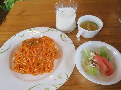 ![]() | 白石ICから17kmほど、国道457号沿い、遠刈田温泉の交差点から2kmほど南下した辺りにあります。蔵王の麓、長閑なところです。蔵王酪農センター内の施設、赤い屋根のログハウスです。店内は、テーブルが4つ、大テーブルが1つありました。丸太がたくさん使われています。ロフトもありました。大きな窓からは緑が見えます。外にはウッドテラスがありテーブルもあります。ナポリタン(960円)とミルク(300円)を注文しました。ナポリタンにはサラダとスープが付きます。具は玉ねぎ、ピーマン、ハムでした。蔵王のモッツァレラチーズとゴーダチーズが絡んで濃厚です。ミルクは蔵王チーズ工場直送だそうです。どちらも美味しかったです。他には、蔵王チーズのチーズフォンデュ、チーズハンバーグ、ピザ、チーズパイなどがありました。 |