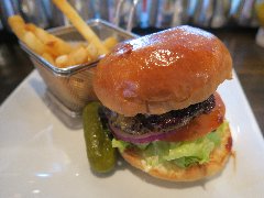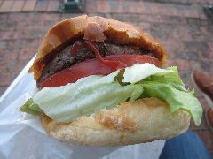 ブラザーズ | ハンバーガー | 東京都中央区日本橋人形町 | ★★ (2013.2.2) | 普通 | ![]() | 人形町駅から隅田川方面に2分ほど歩いた路地裏にあります。ハンバーガーの専門店であるブラザーズ(人形町店)の近くにあり、こちらはテイクアウトとデリバリーを行っているようです。人形町店と同じくおしゃれな赤い壁で目立ちます。店内はテイクアウト用のカウンターがあり、その奥は広い厨房になっています。ハンバーガー(1000円)を持ち帰って食べました。ハンバーガーはとても豪華な紙箱に入っています。トマト、レタス、玉ねぎ、牛肉100%のパテが挟まっています。ケチャップとマスタードの小袋がついているのでお好みで追加出来ます。美味しいです。バンズ自体も美味しいです。箱にはフライドポテトとオニオンリングも入っています。一番安いハンバーガー(1000円)から一番高いダブルロットバーガー(1850円)までいろいろあります。 |