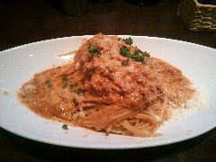 ![]() | 築地駅から4、5分、居留地中央通り沿いにあります。マンションの1階です。赤い庇、ガラス戸の外観です。店内は、カウンター席が10、テーブルは3つありました。明るくてイタリアンな雰囲気です。牛肉、もやし、チーズのボロネーゼスパゲッティ(1100円)を注文しました。サラダと自家製パンが付きます。ボロネーゼはトマトベースにひき肉たっぷり、もやしがシャキシャキ、そしてチーズが溶けてパスタに絡みます。美味しかったです。牛タン、キノコ、フレッシュトマトのオイルベーススパゲティ、鱧、長ネギ、ゴボウのクリームソーススパゲティなどがありました。 |