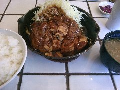 勝鬨亭 | 洋食 | 東京都中央区勝どき | ★ (2014.3.20) | 普通 | ![]() | 勝どき駅から2分ほど、車が入れない路地裏にありちょっと分かりにくいです。偶然にお店を見付ける事は難しいと思います。店内は、カウンター席が5つ、テーブルが2つありました。狭いです。基本的には和風な雰囲気ですが、壁にはモンキーズのアルバムなどアメリカンなものが飾ってあります。ランチメニューからポークソテー(950円)を食べました。味噌汁、ライス(結構多め)が付きます。メインのお皿にはポークソテーと付け合せはキャベツ、トマト、パスタでした。デミグラスソースが美味しいです。ポークジンジャーが美味しそうでした。アットホームな雰囲気です。 |