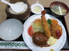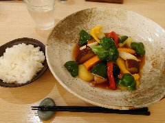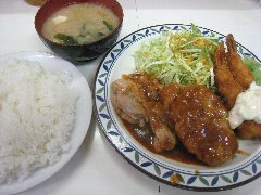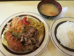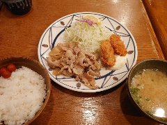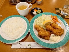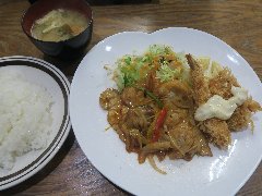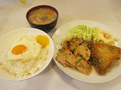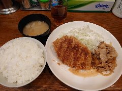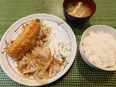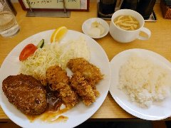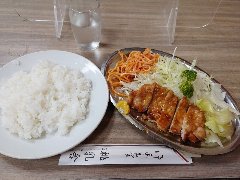 ![]() | 小伝馬町駅から5分ほど、岩本町駅からは5分ほど、神田金物通り沿いにあります。ビルの1階です。弁当用の小窓がありました。元キッチンジローのようです。店内は、テーブル席が多数ありました。テーブルには小梅が置かれていました。お好み盛り合せ(1000円)を注文しました。ライスと豚汁が付きます。14のおかずから2つ選びます。スタミナ焼とかきフライにしました。スタミナ焼は豚肉と玉ねぎの炒め物、生姜とにんにくが効いて食欲をそそります。カキは広島産との事、外さっくり中ふっくらでした。美味しかったです。他のおかずは、メンチかつ、ハンバーグ、豚しゃぶ、カレーやハヤシもありました。 |