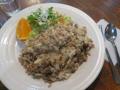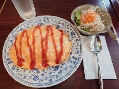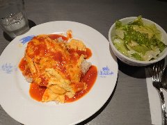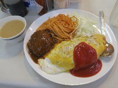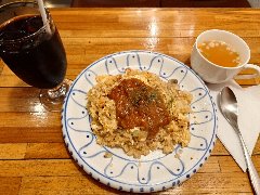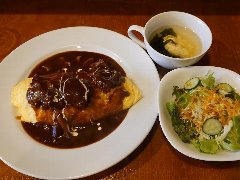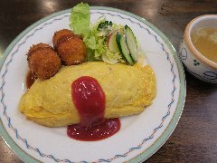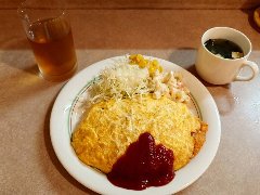 ![]() | 神保町から5分ほど、錦華通りと猿楽通りの間の路地にあります。ビルの1階です。緑色の庇、地味な外観です。店内は、カウンター席が6つ、テーブルが5つありました。やや薄暗くて渋い雰囲気です。マスターのワンオペ、普通にたばこ吸ってました。オムライス(1200円)を注文しました。サラダ、スープ、ドリンクが付きます。薄めの卵焼きが乗っていました。ケチャップライスには、玉ねぎ、人参、ハムが入ていました。ケチャップ多めの味付けでした。コーヒーは濃いめでした。美味しかったです。他には、各種ドリンク、ナポリタン、カレーライス、ハンバーグ、サンドイッチなどがありました。 |